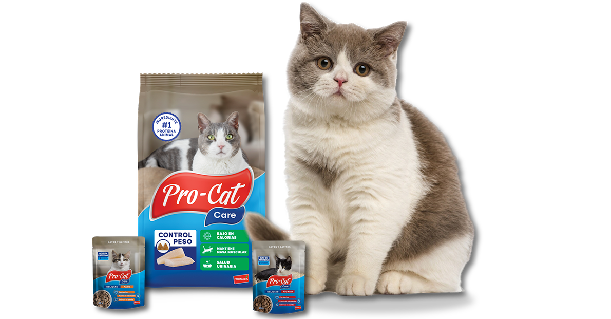 Pro-Cat Care es una línea de productos enfocada en el bienestar de los gatos, que ha sido especialmente diseñada con ingredientes de excelente calidad y digestibilidad. Gracias a la inclusión de proteína animal como su primer ingrediente, posee características específicas para diferentes necesidades nutricionales en el cuidado de nuestros felinos.